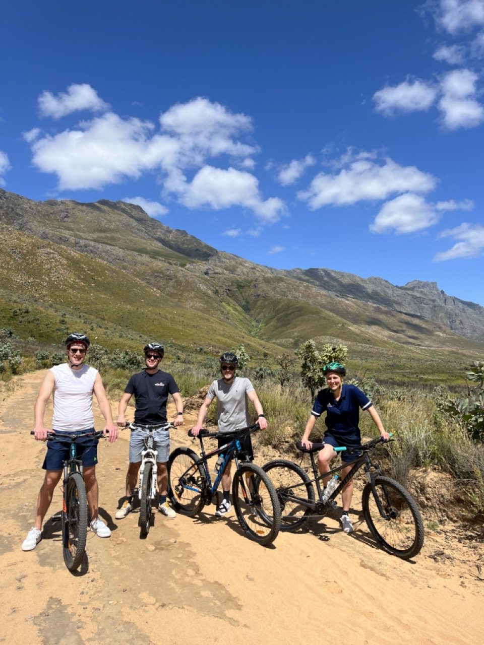 Our e-bike tour is a meticulously crafted route that showcases the best of Stellenbosch. We begin at the luxurious Lanzerac Hotel & Spa, and then cycle through the historic town itself. From there, we take you on a scenic ride through the breathtaking Jonkershoek Valley, a UNESCO World Heritage site. Our path continues along forest-lined roads, leading us to the beautiful Stark-Condé and culminating at the historic working farm of Rustenberg Wine Estate.